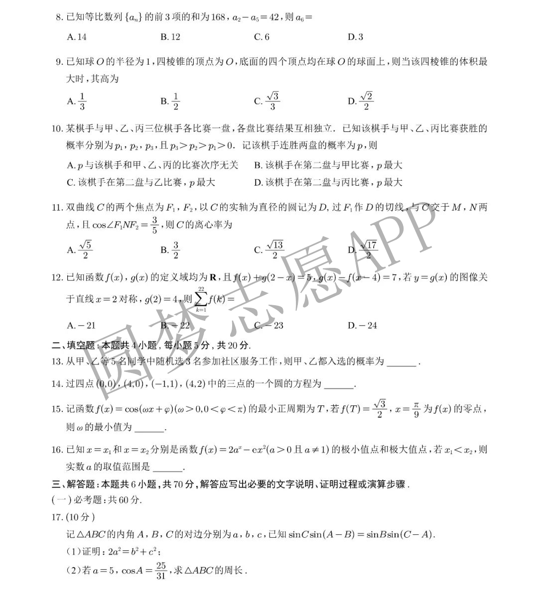 本期为大家整理2022高考答案全国乙卷、以及2022高考试卷全国乙卷相关内容,一起来看看使用全国乙卷的省份如河南、安徽、陕西、等地,2022年高考语文、数学、英语、文综、理综的考试试卷及答案。