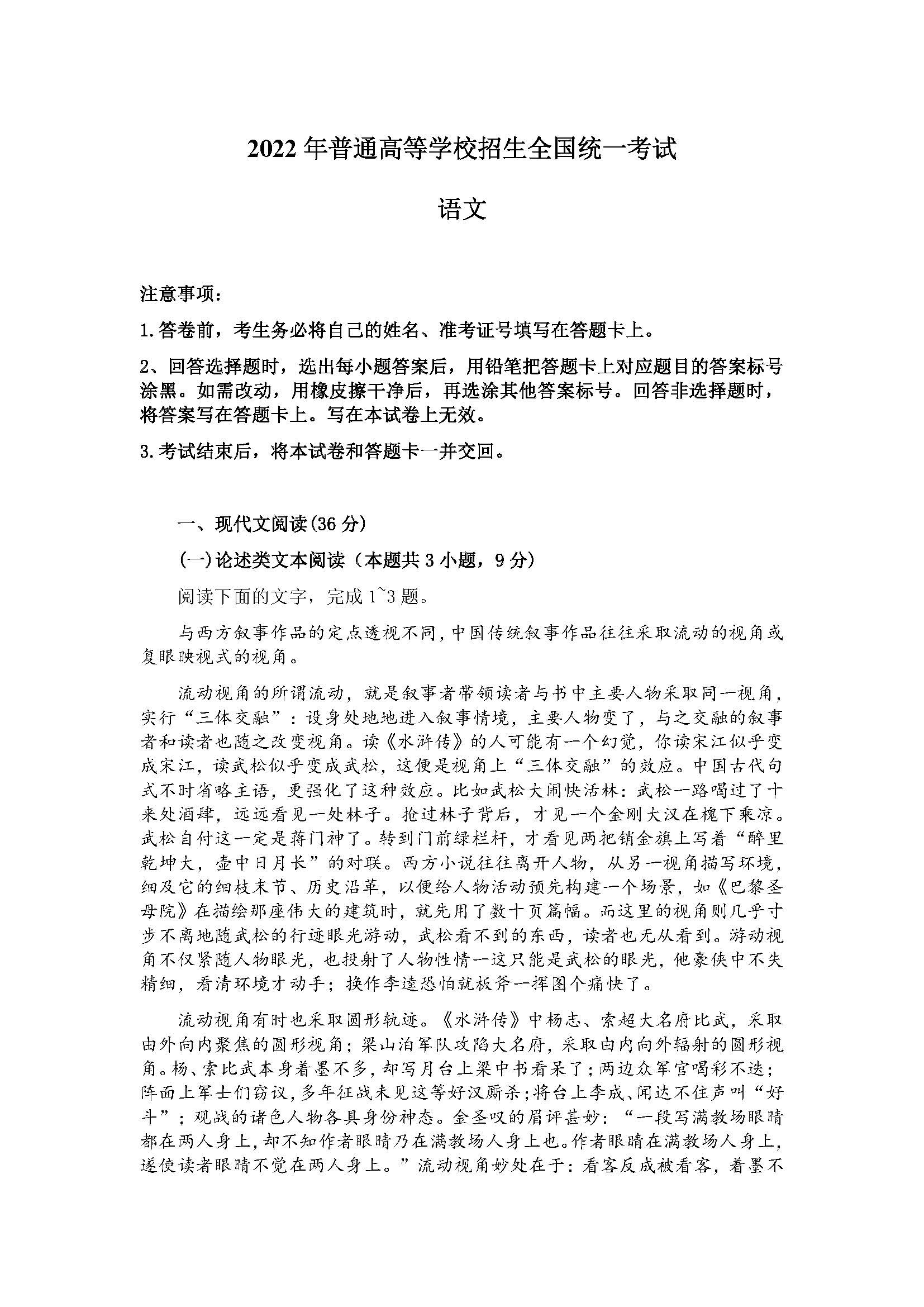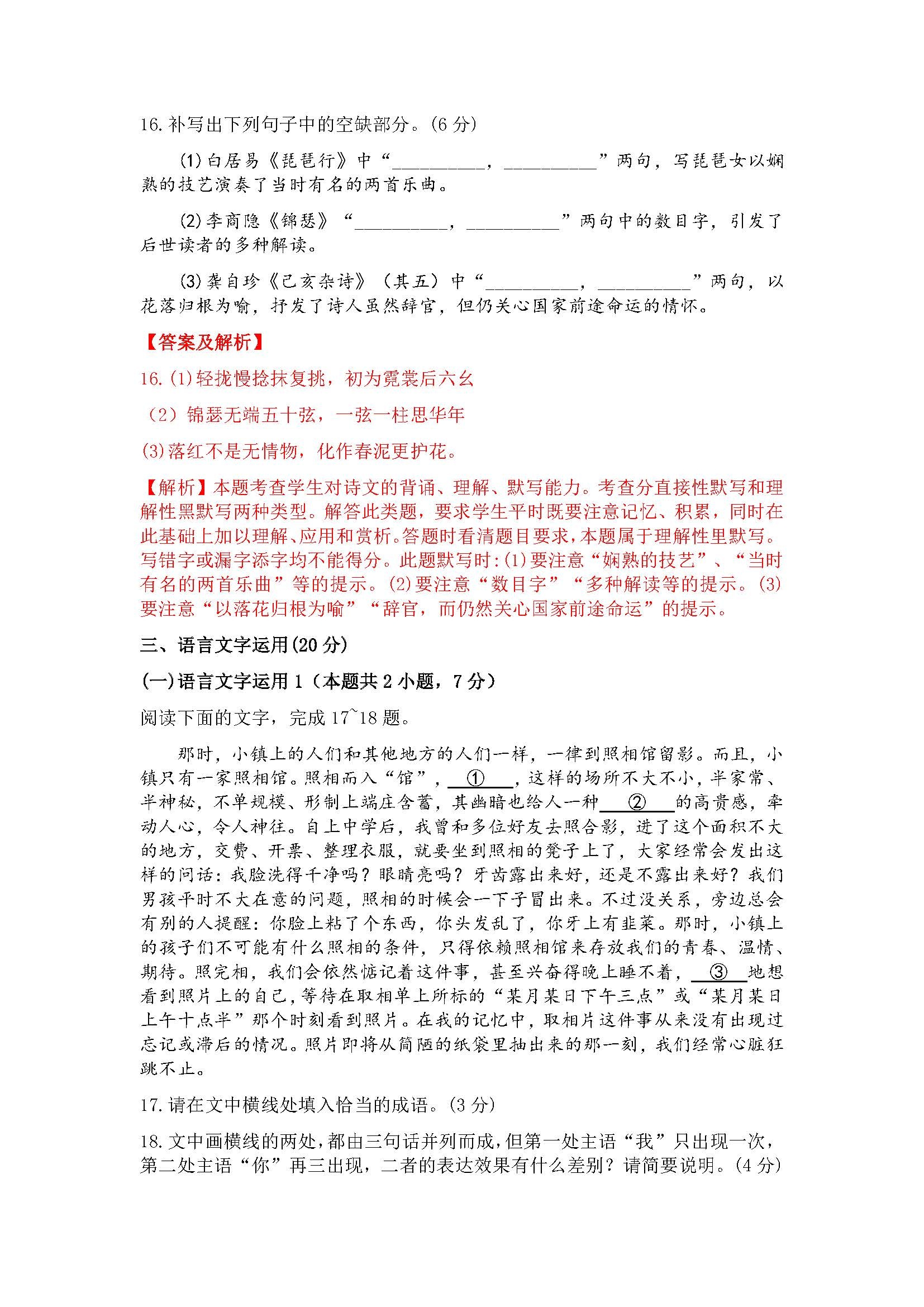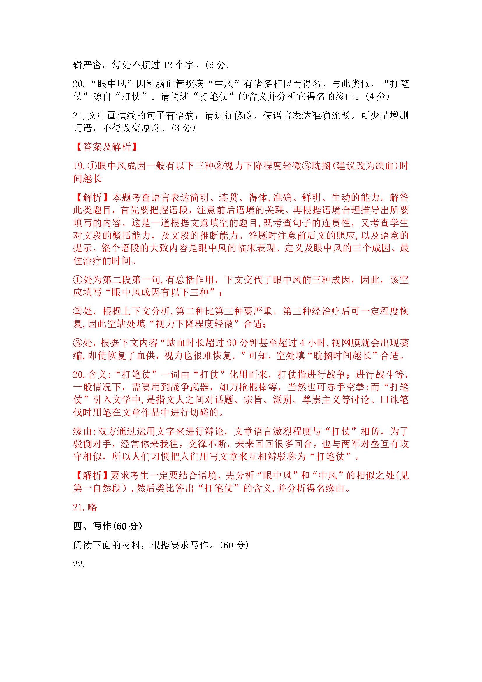 一. 全国乙卷语文试卷及答案汇总(含作文解析)