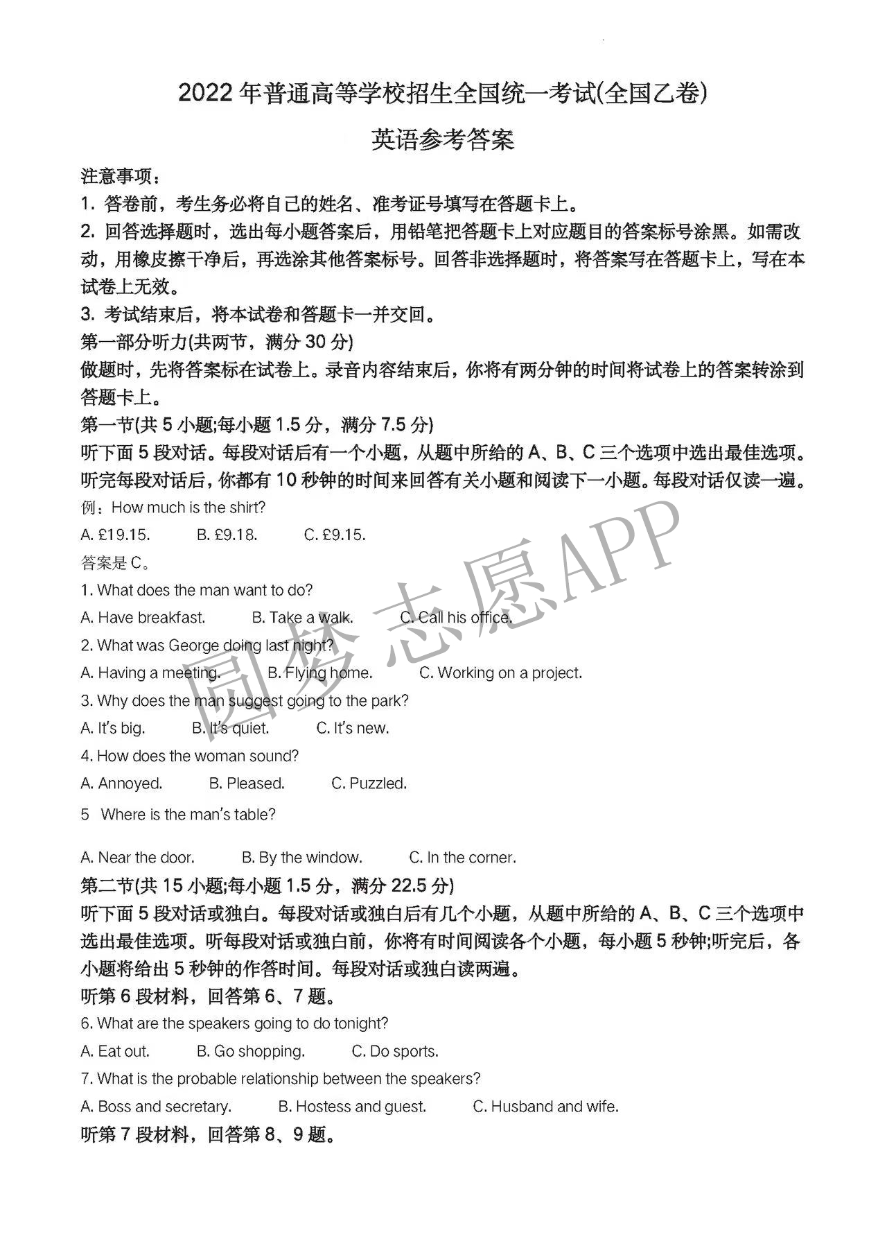 六. 全国乙卷英语试卷及答案汇总(含作文、听力)