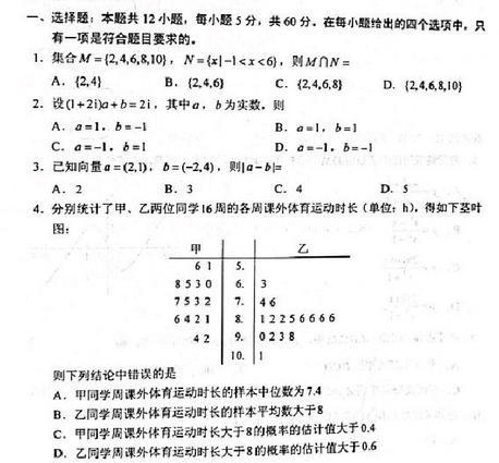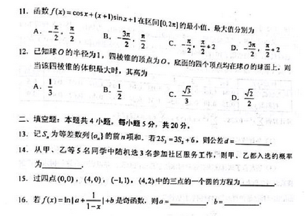 二. 全国乙卷数学(理)试卷及答案汇总