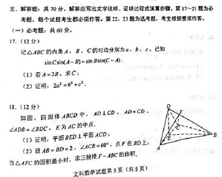 三. 全国乙卷数学(文)试卷及答案汇总