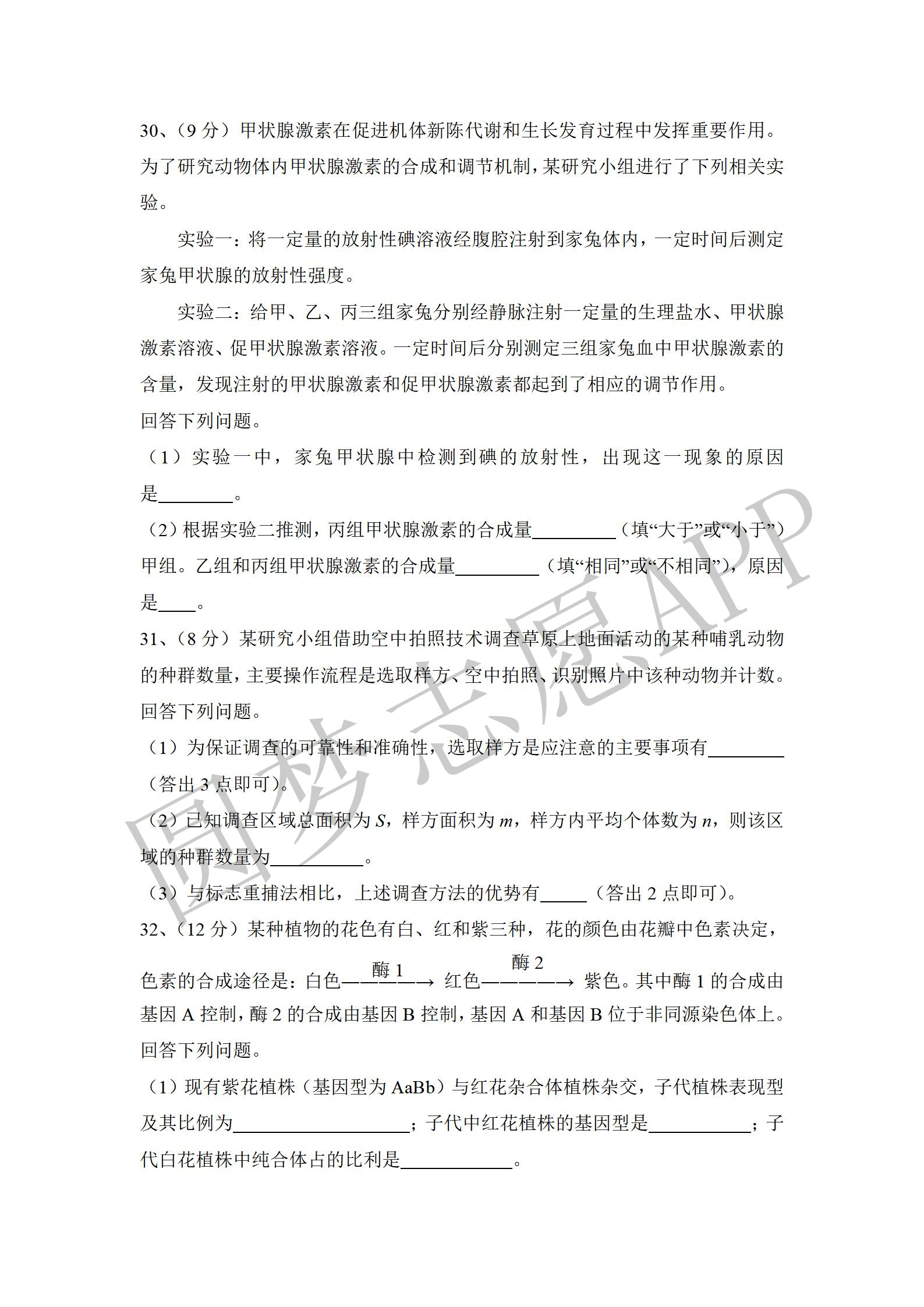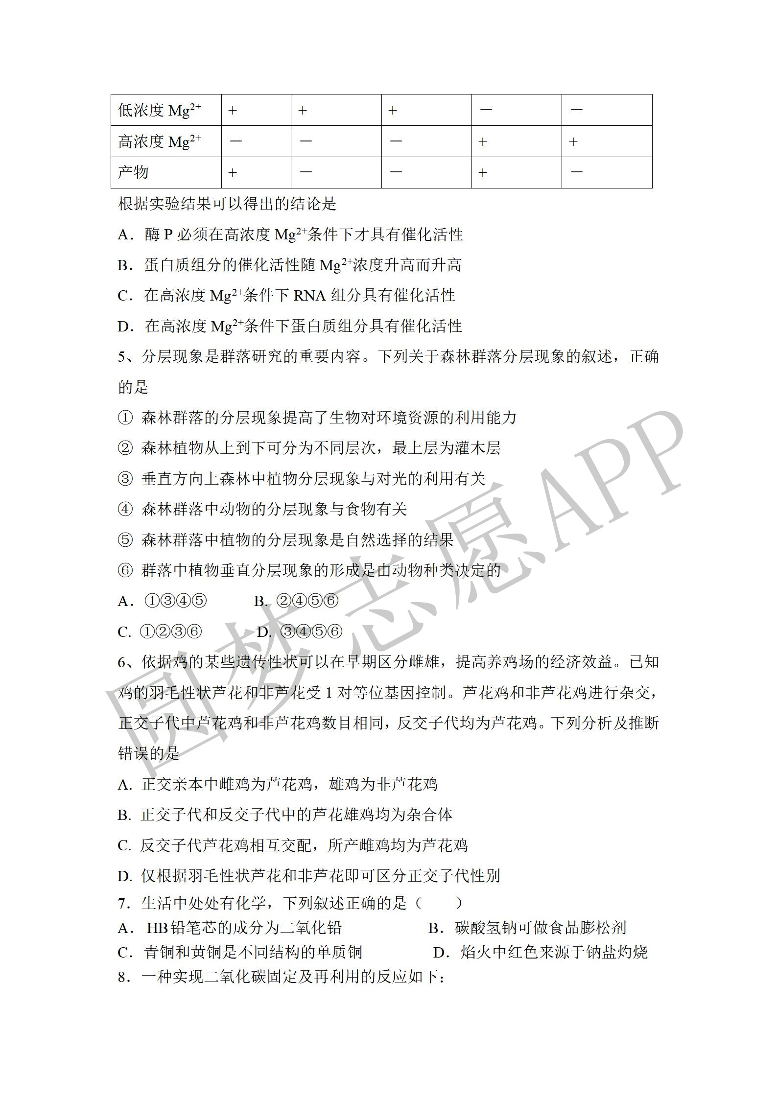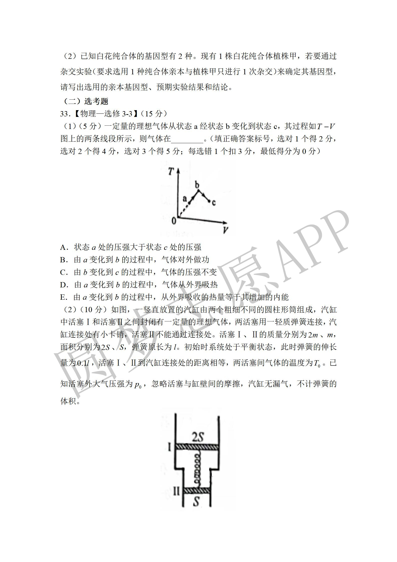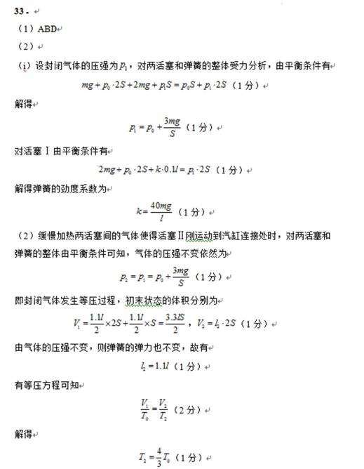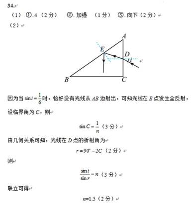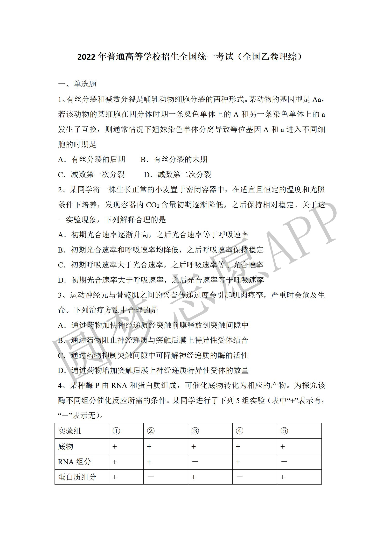 四. 全国乙卷理综试卷及答案汇总(物理、化学、生物)