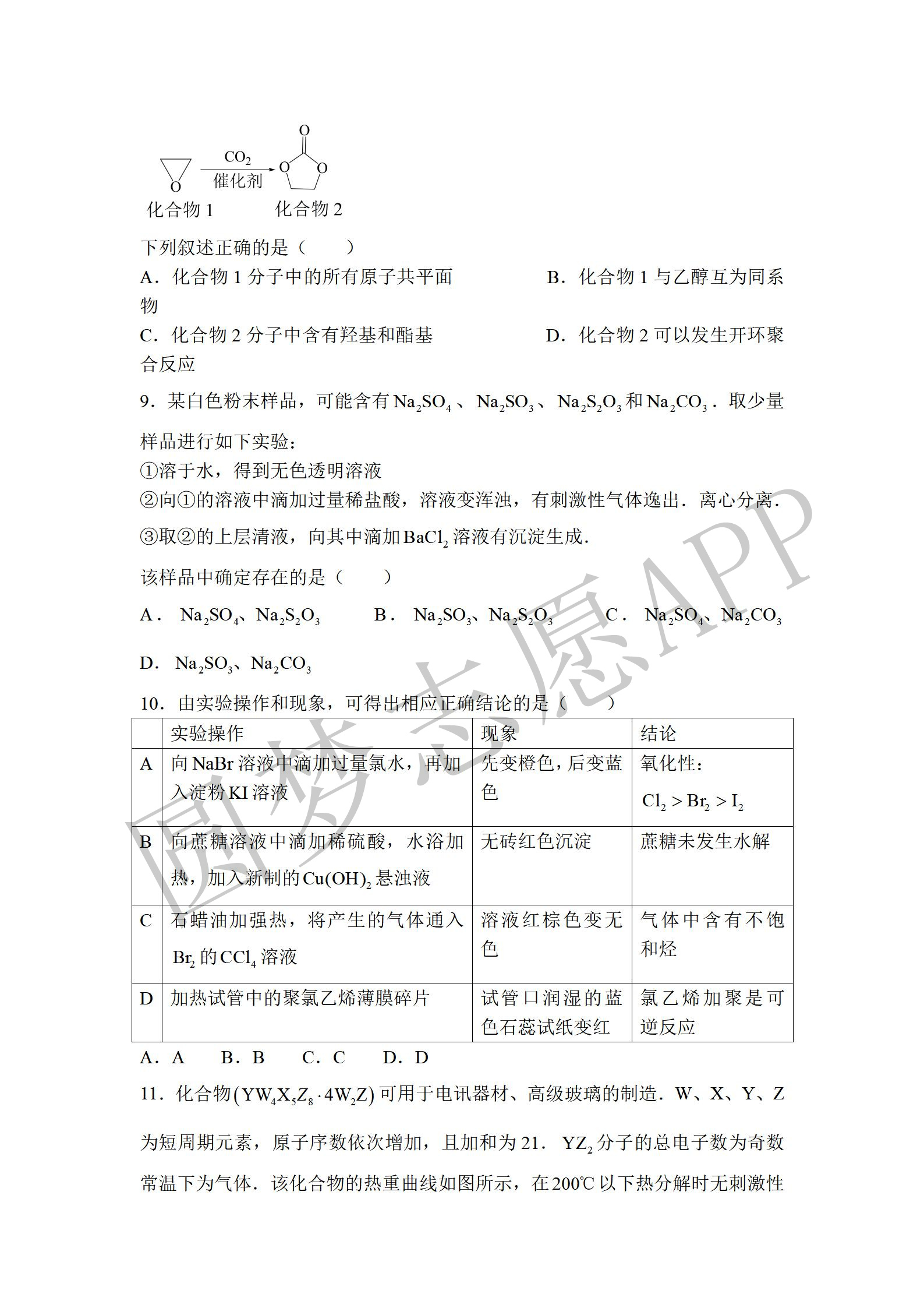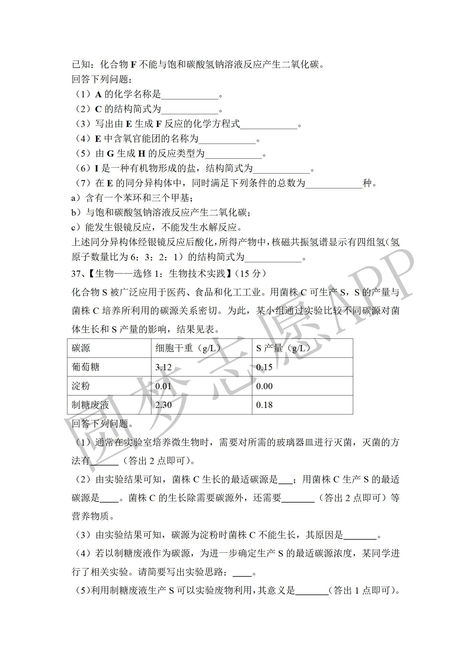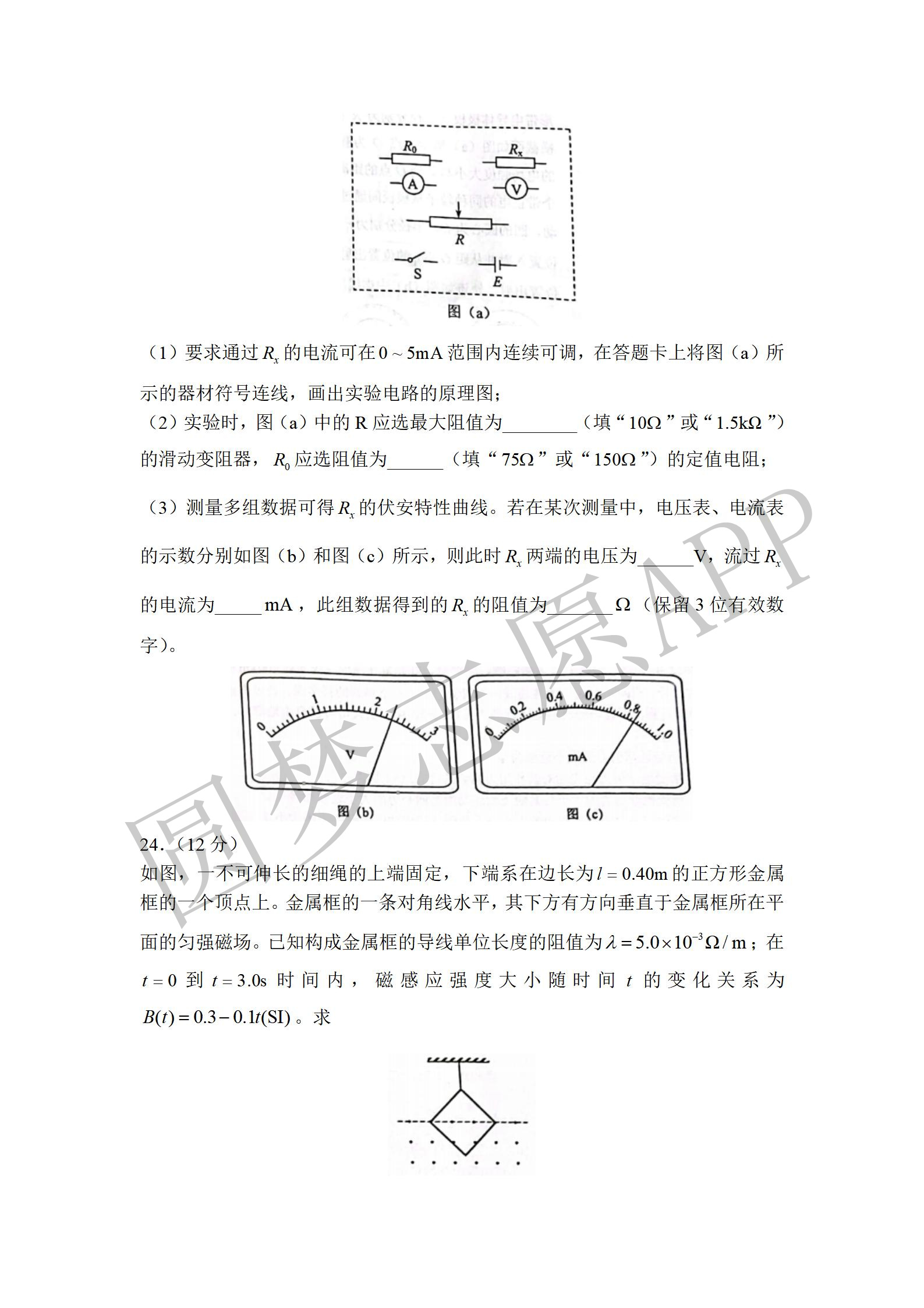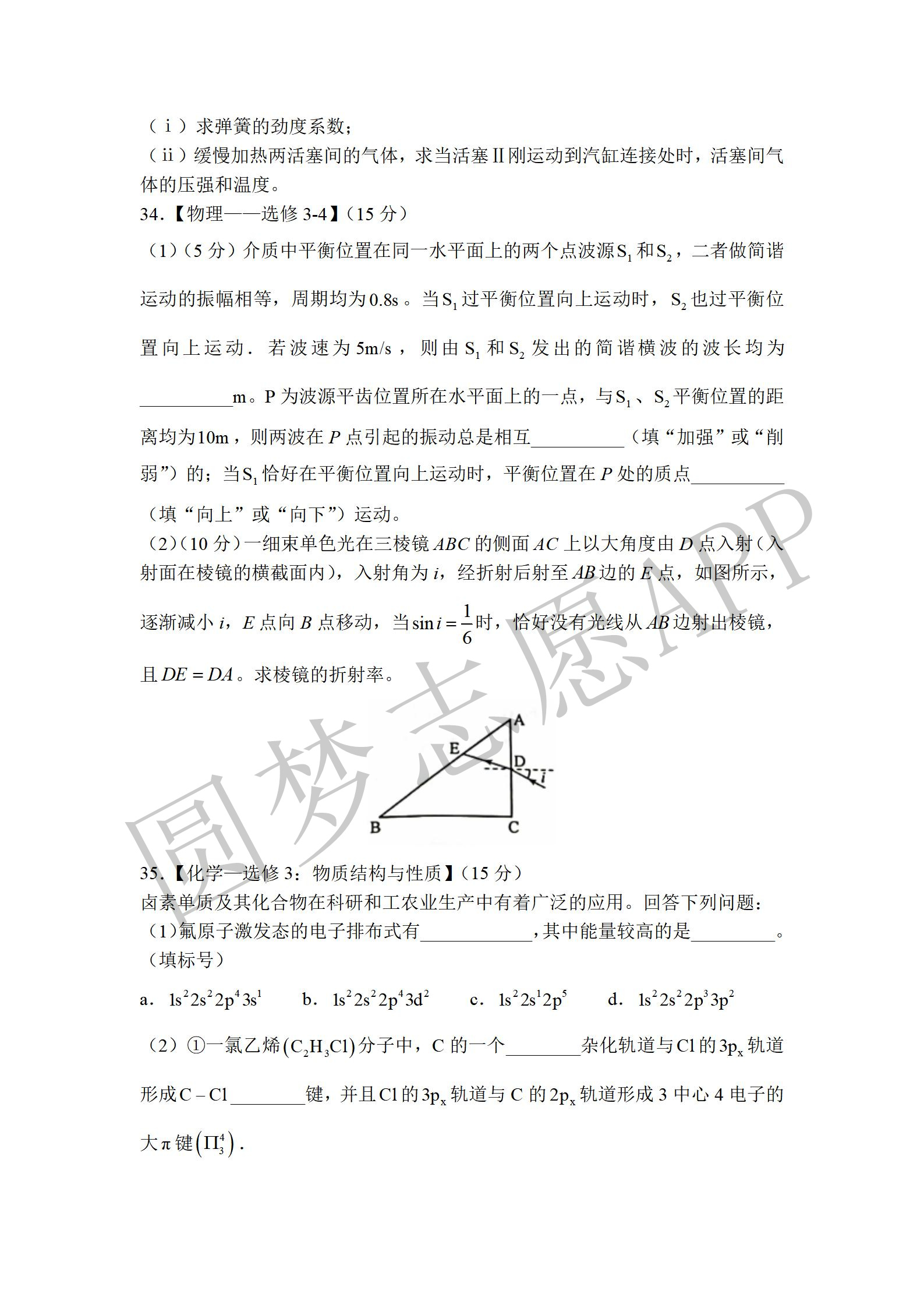 四. 全国乙卷理综试卷及答案汇总(物理、化学、生物)