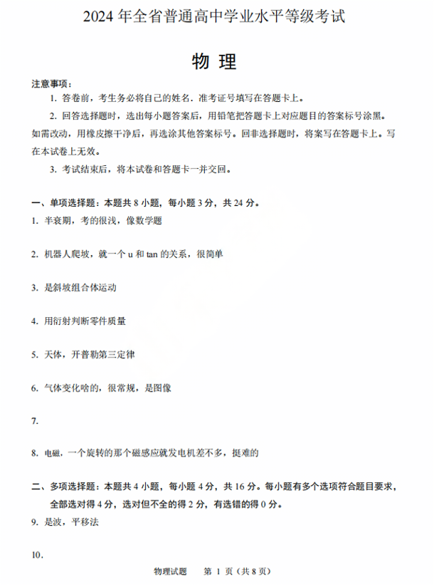 2024全国高考安排在6月7日开考,本期将整理2024山东高考真题及各科答案解析,包含语文、化学、外语、物理、化学、生物、政治、历史、地理各科的答案,同学们可通过这份资料,对各科成绩进行预估。