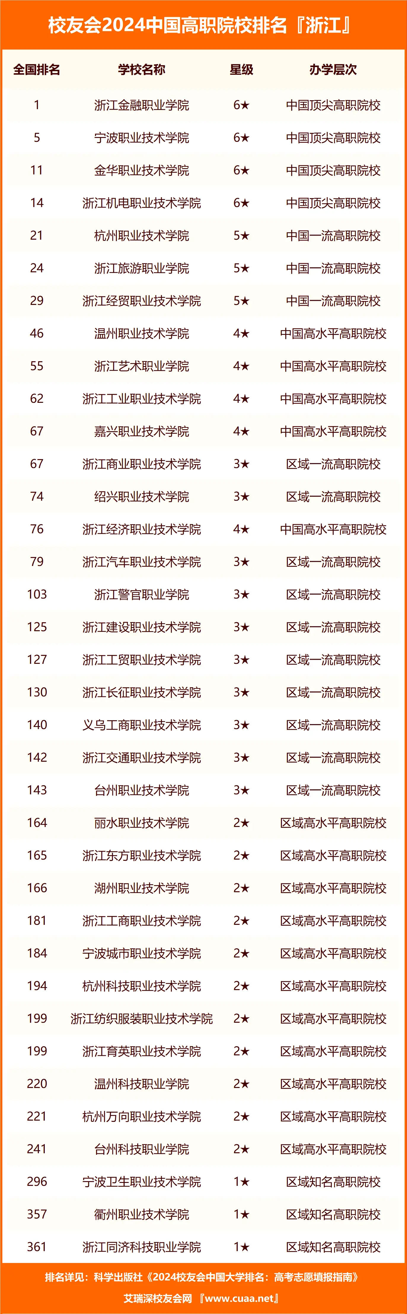 在2024年校友会公布的中国大学排名名单中,浙江高职专科大学排名前十名的是: