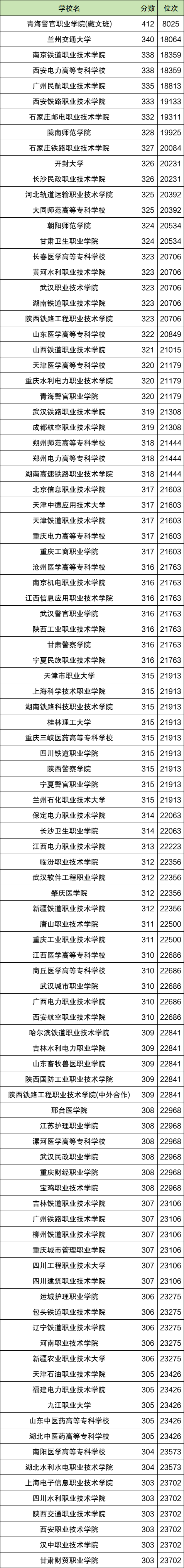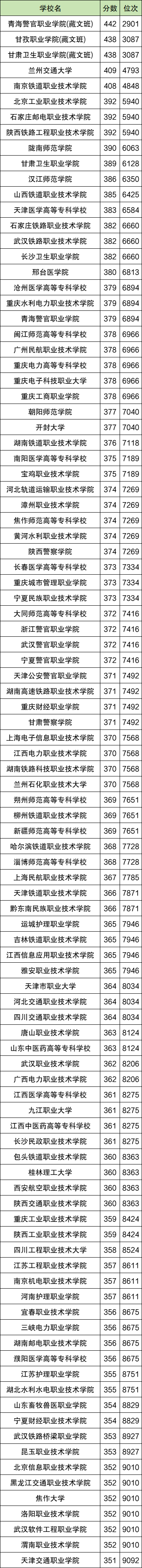 篇幅有限,下面仅列举2024青海文科公办大专分数线Top100大学名单: