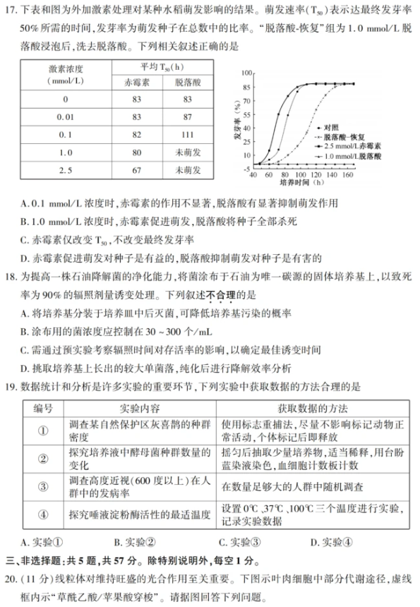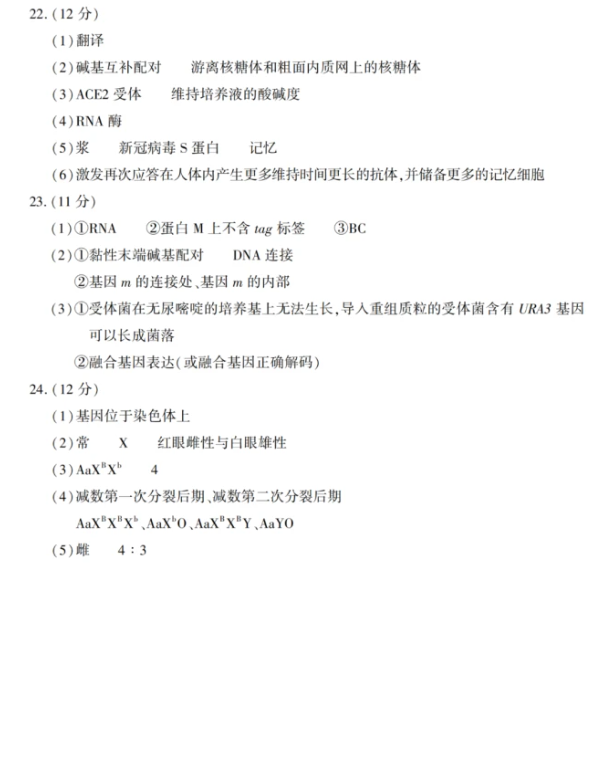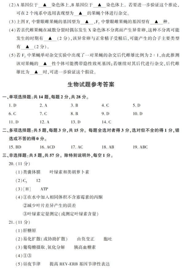 二. 2022全国高考江苏省生物试卷答案