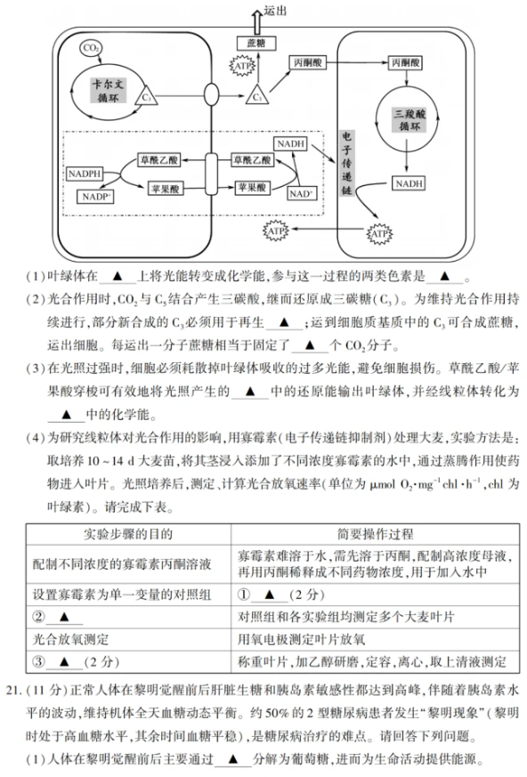 三. 2021年全国高考江苏省生物试卷及答案