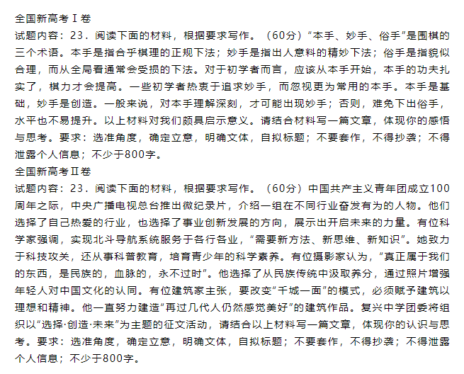 2022年高考语文作文题目汇总