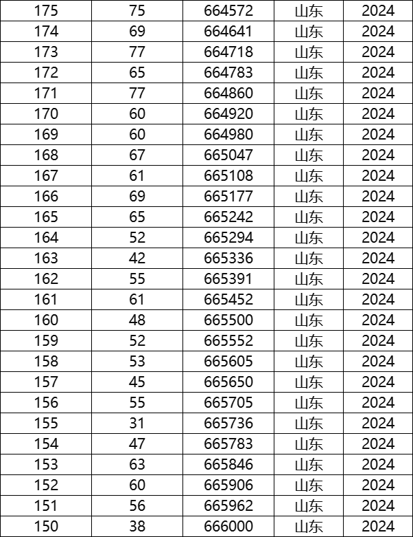 一、2024年山东高考排名一览表