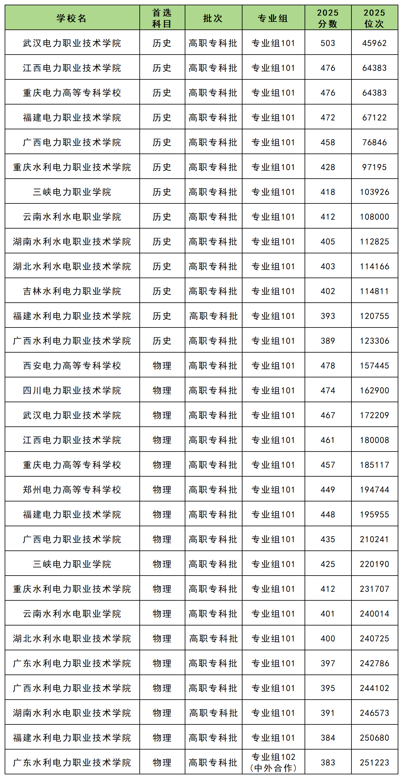 如下为各位展示的是2025年四川电力专科院校的录取分及位次情况: