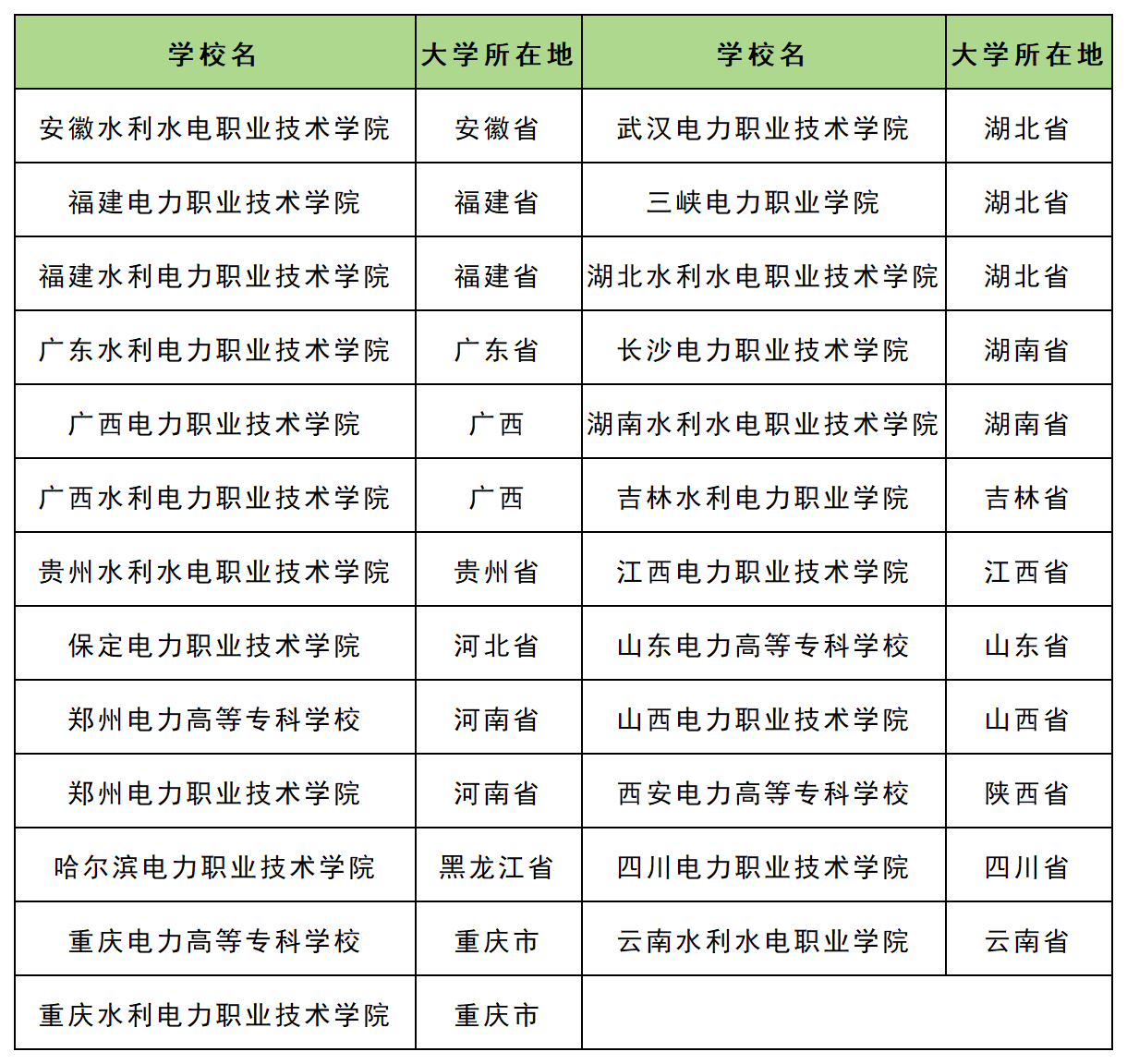 广西:广西电力职业技术学院、广西水利电力职业技术学院