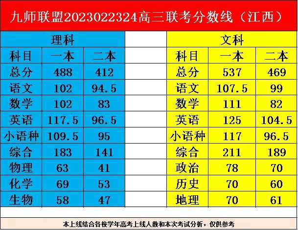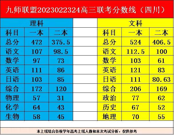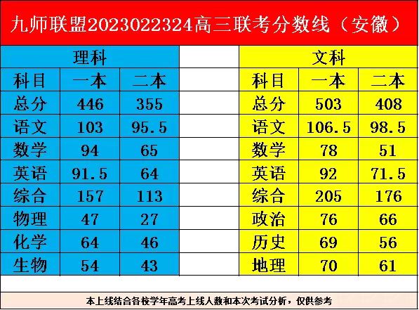 九师联盟高三2月联考分数线2023公布,河南、江西、安徽、山西、四川等地九师联盟2月质量检测一本二本划线如下。