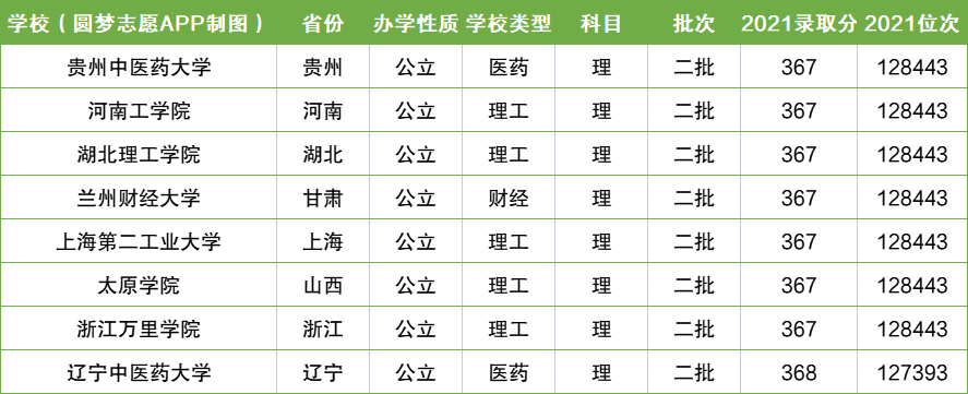 在贵州录取分数线最低的前八所大学中,分数线在367-368分之间,超过了本科线0-1分,而排名位次在127393-128443之间。