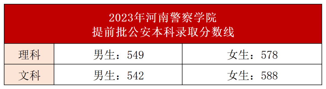 被誉为中原警察的摇篮的河南警察学院2023年在本省招收公安专业警校学员的最低录取分数为理科男生549分、女生578分;文科男生最低收分为542分、女生588分。