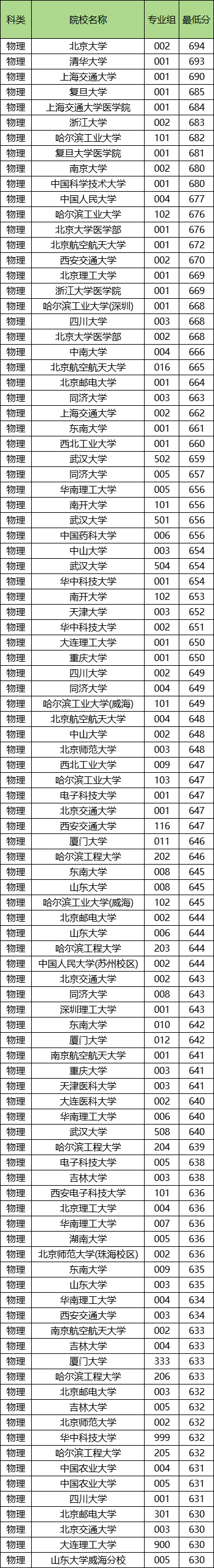 篇幅有限,下面仅展示全国高校在内蒙古物理类本科录取分数线排名前100强名单: