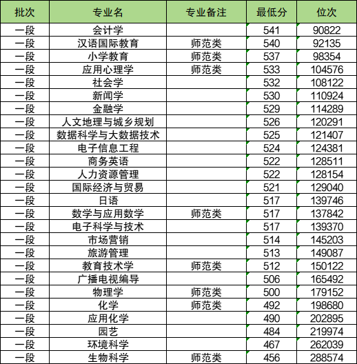地理信息科学专业:最低542分。