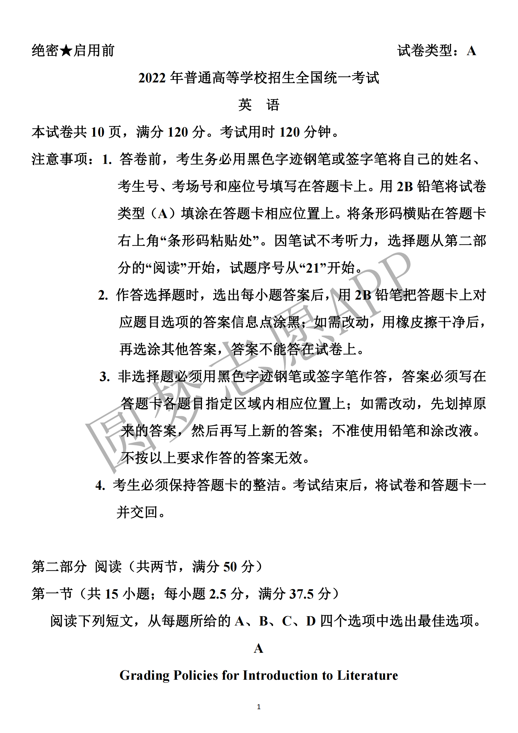 一.2022年河北英语真题