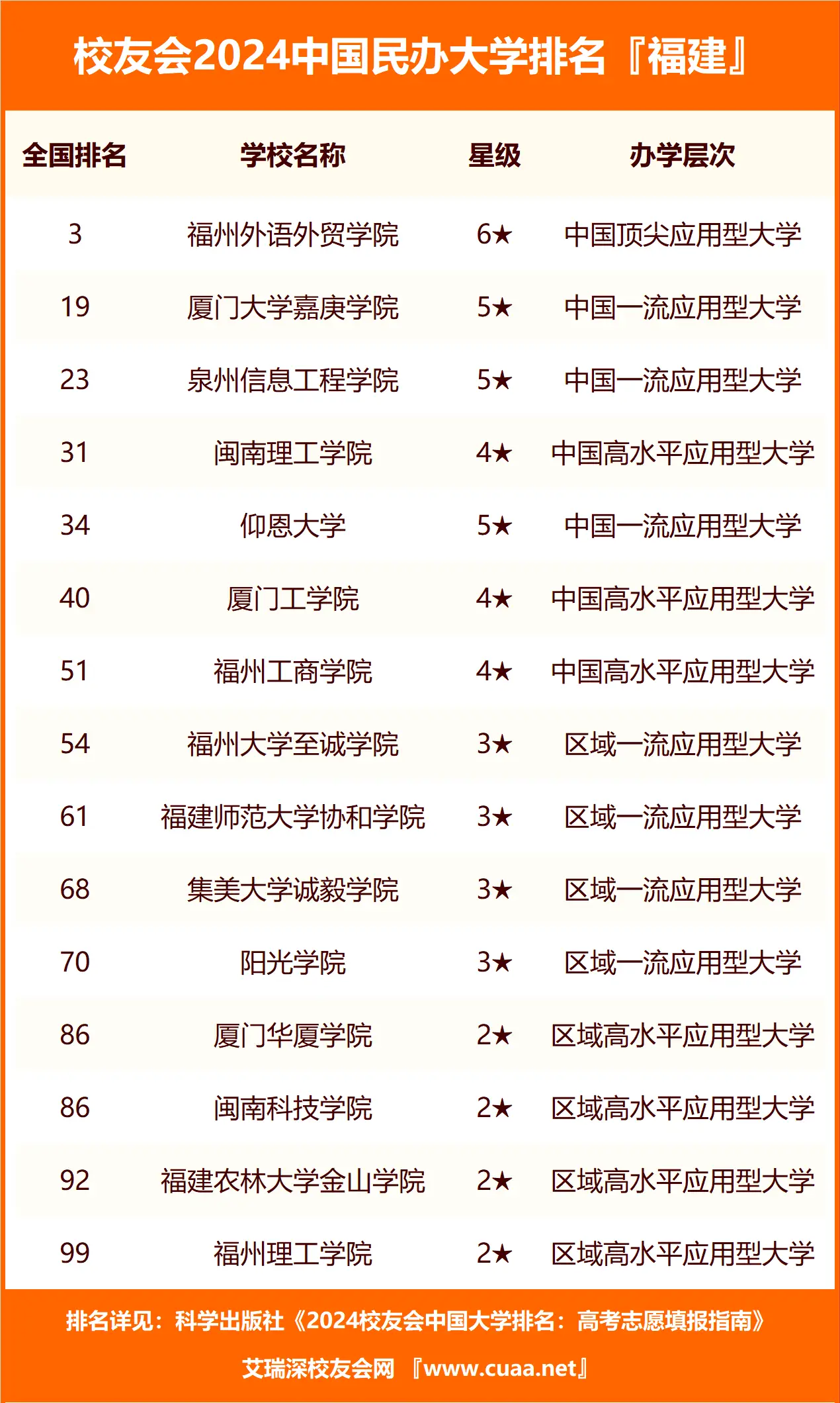 在2024年校友会中国大学排名名单中,福建民办大学排名前十名的是: