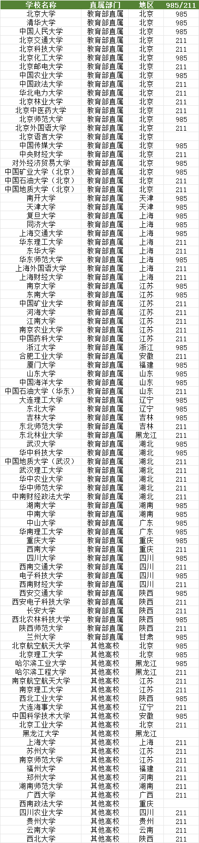 高校专项所有大学名单如下图: