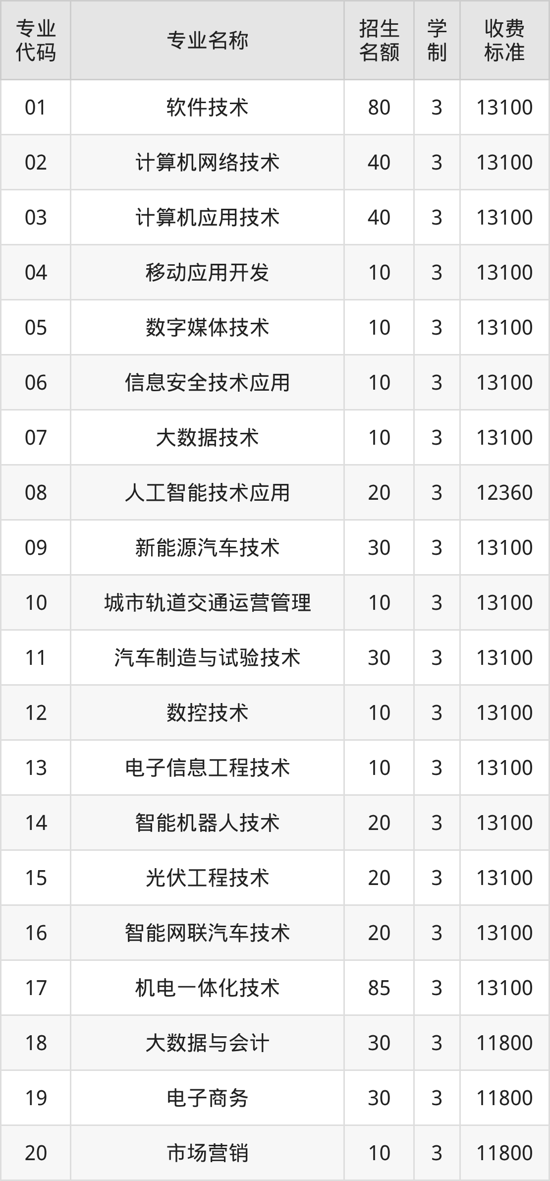 | 01 | 软件技术 | 50 | 3 | 13100 |