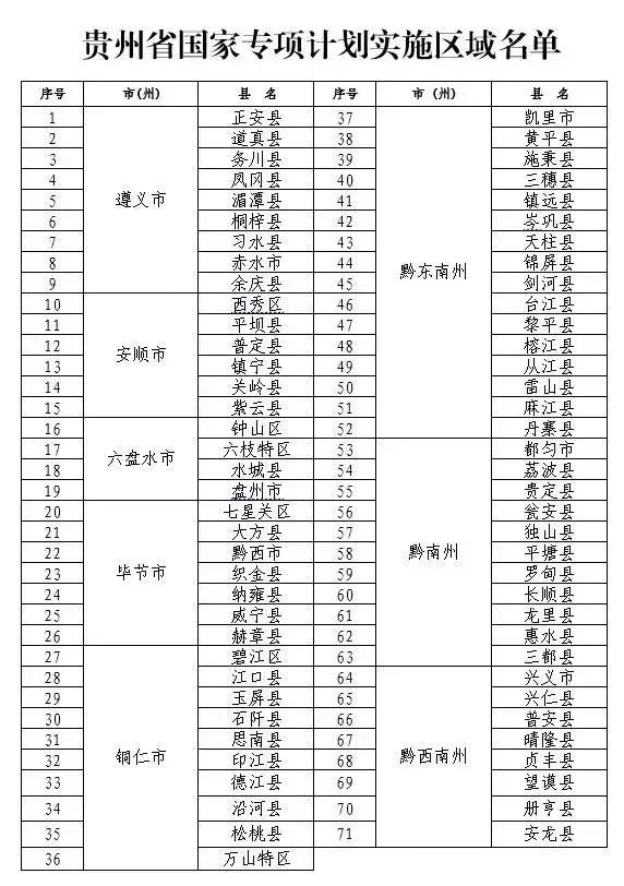 国家专项计划:贵州大学、贵州师范大学、贵州财经大学、贵州民族大学、贵州医科大学、遵义医科大学、贵州中医药大学、贵州师范学院、贵州理工学院。