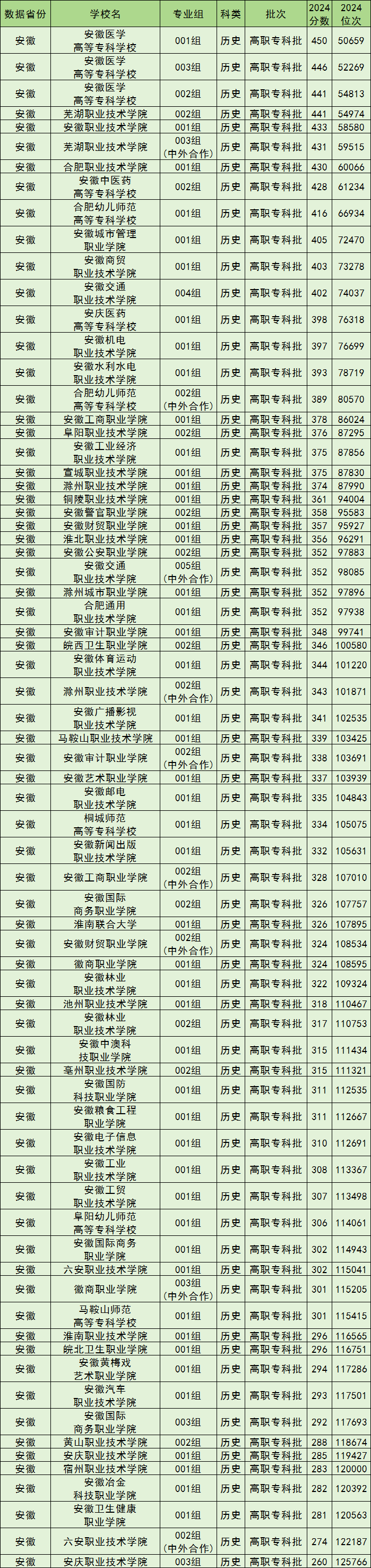 按照安徽省所有公办大专院校2024年在安徽省内录取分数线高低排名,为大家整理以下内容。