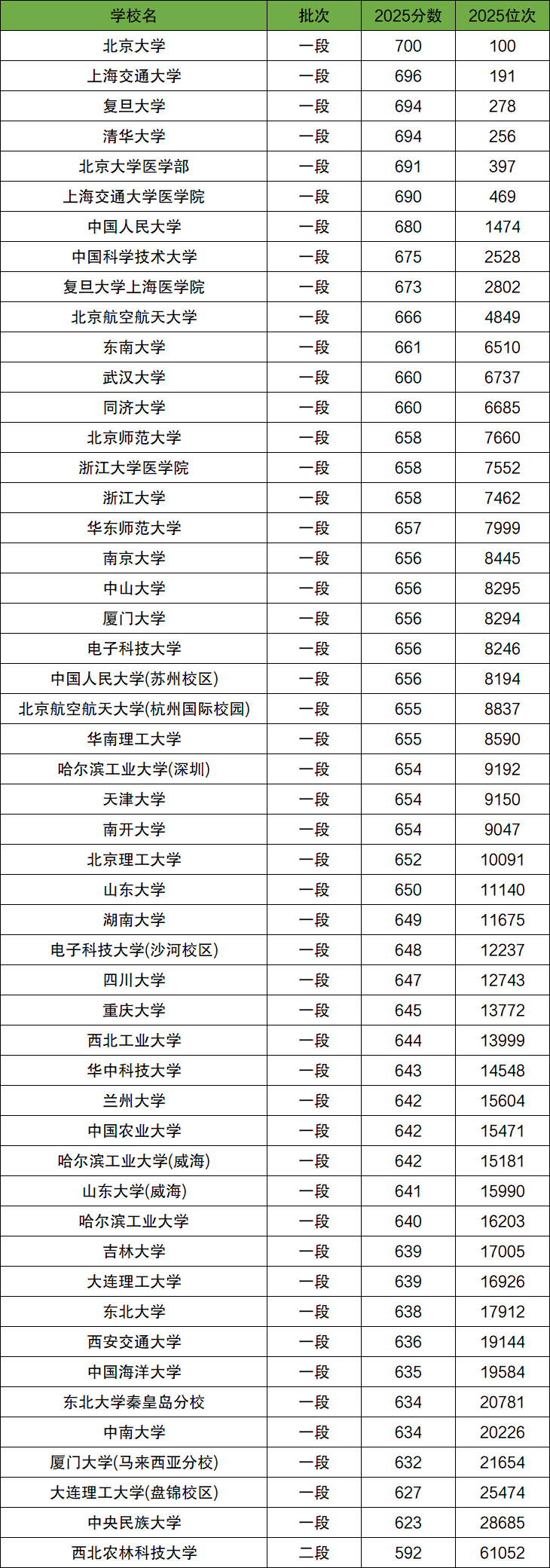 2025全国985大学在录取分数线592分-700分。最高录取分数线对应院校:北京大学;最低录取分数线对应院校:西北农林科技大学。