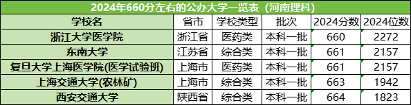 660分左右能上的院校有3所,都属于实力很强的一本院校。