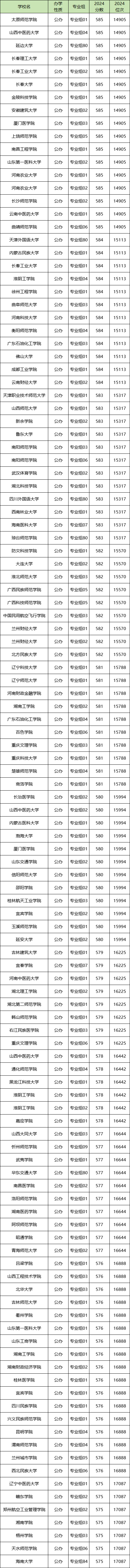 2024年海南物生地580分左右能上太原师范学院01组(585分)、厦门医学院01组(580分)、天水师范学院06组(575分)等院校专业组。