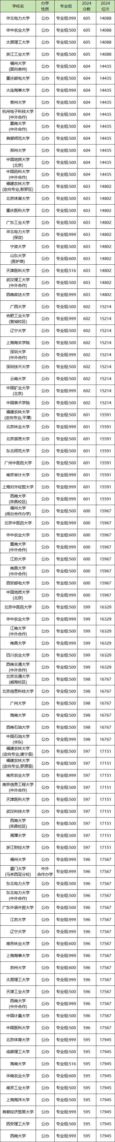 2024年福建物化生600分左右能上浙江工业大学500组(605分)、江苏大学500组(600分)、西安理工大学500组(595分)等院校专业组。