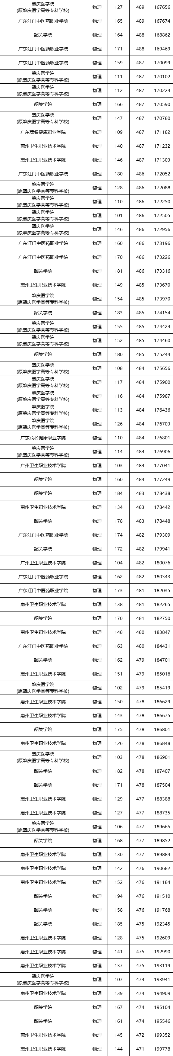 而收分最低的院校是惠州卫生职业技术学院,它的最低分专业组为144专业组,分数为471分(位次199778名)。