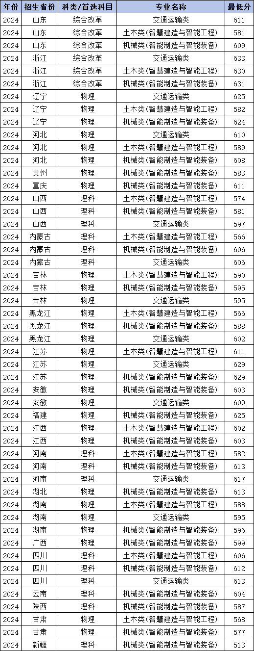 2024年北京交通大学高校专项计划在湖南录取最低分物理类为588分,物理组收分最低的专业为土木类(智慧建造与智能工程)。
