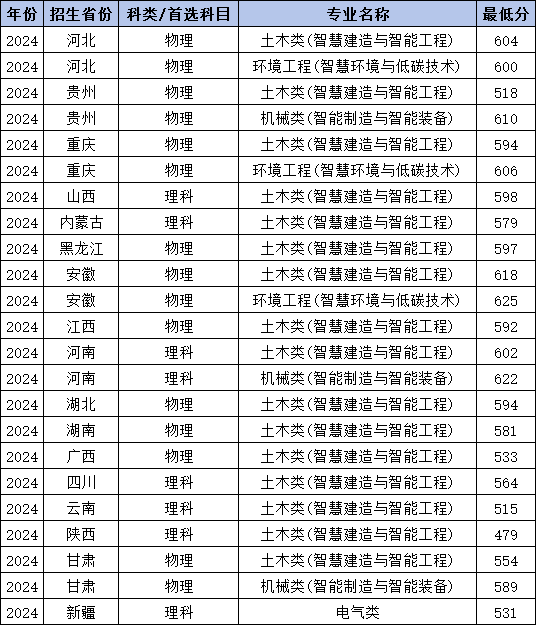 2024年北京交通大学国家专项计划在安徽录取最低分物理类为618分,物理组收分最低的专业为土木类(智慧建造与智能工程)。