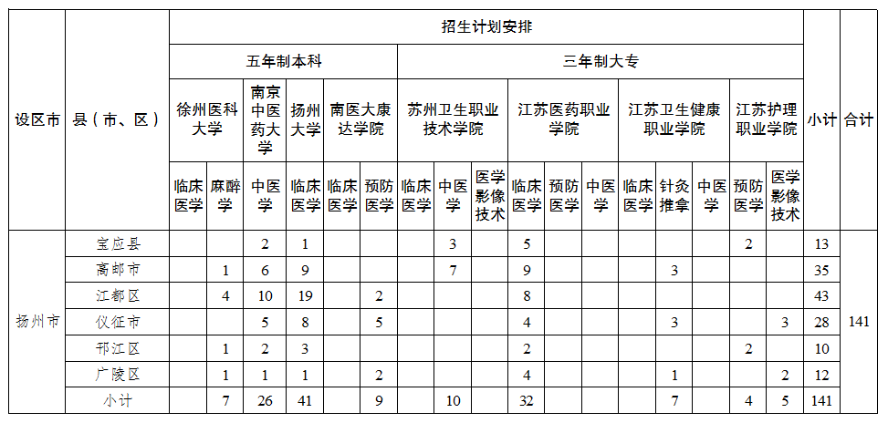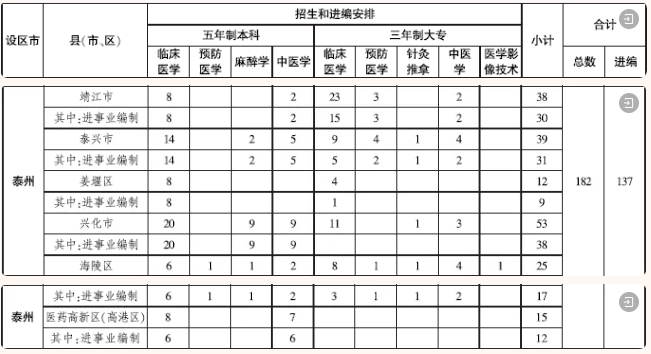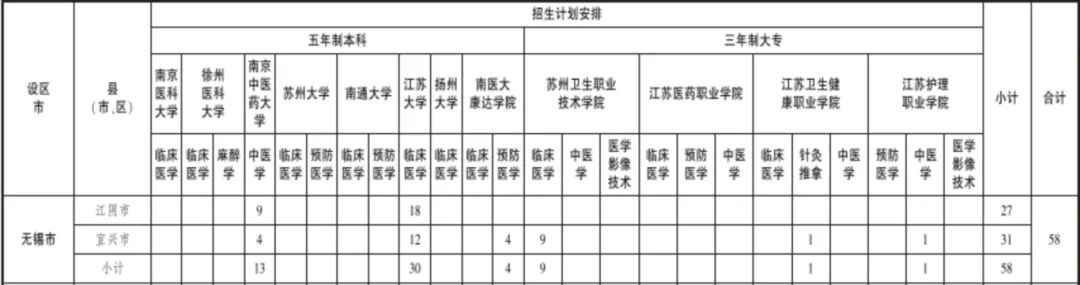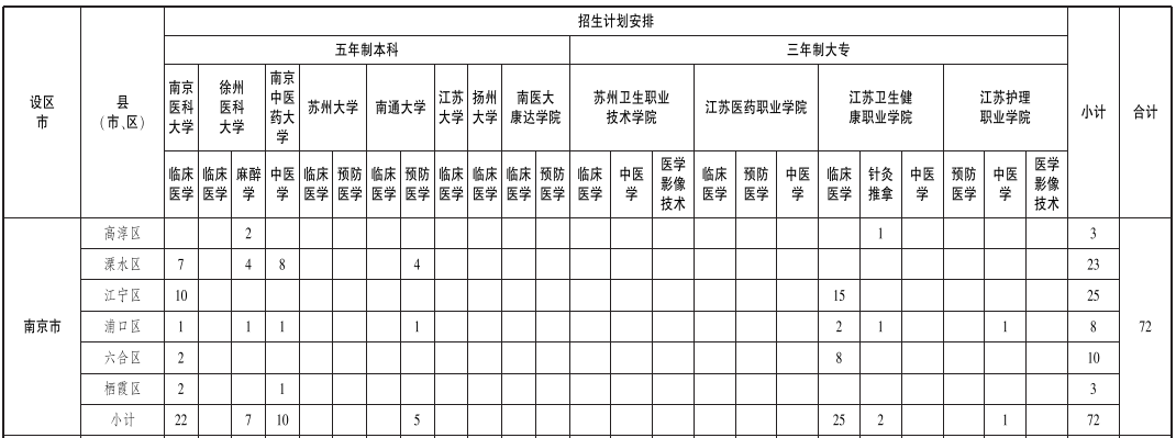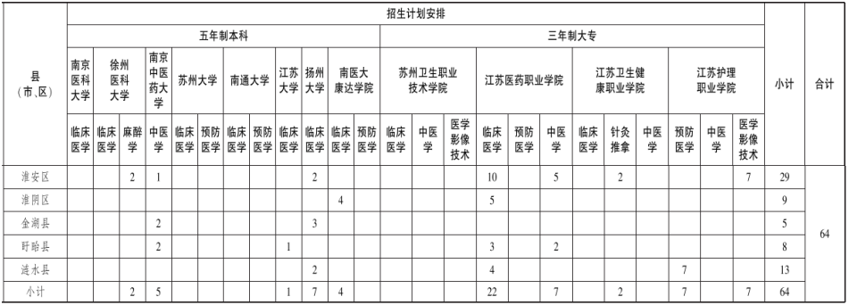 2024年江苏本科免费医学生实施定向县(市、区)及招生计划如下: