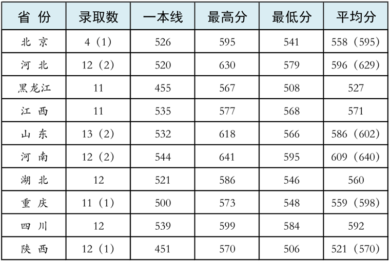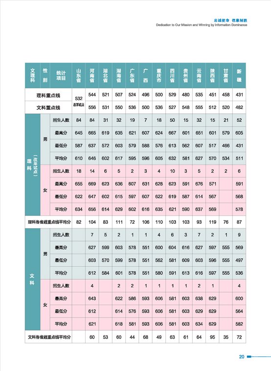1、国防科技大学(长沙):非指挥类最低分为青海的562分、指挥类最低分为青海的525分