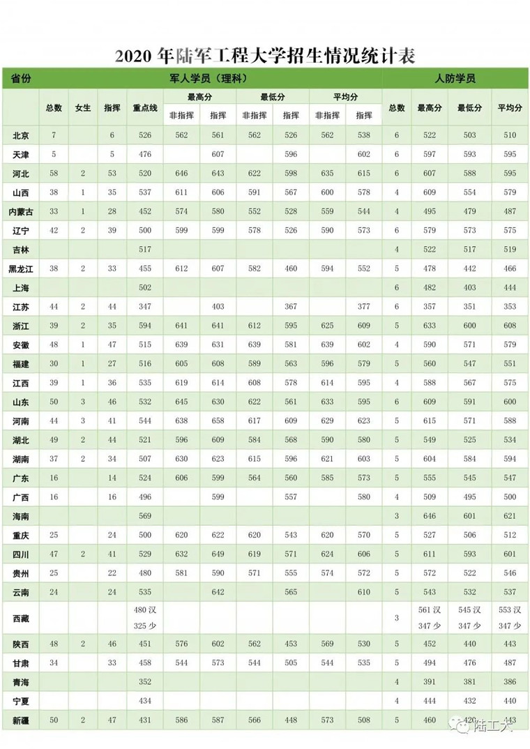 2、陆军工程大学(南京):指挥类最低分为新疆的448分