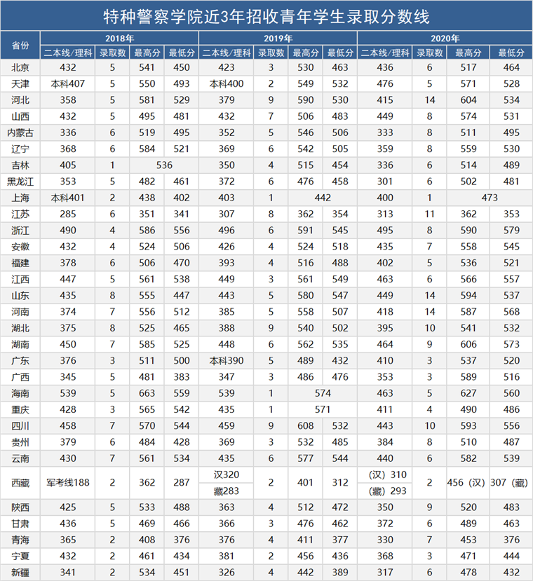 6、陆军特种作战学院(桂林):2020年最低分为男生甘肃460分、女生江西538分