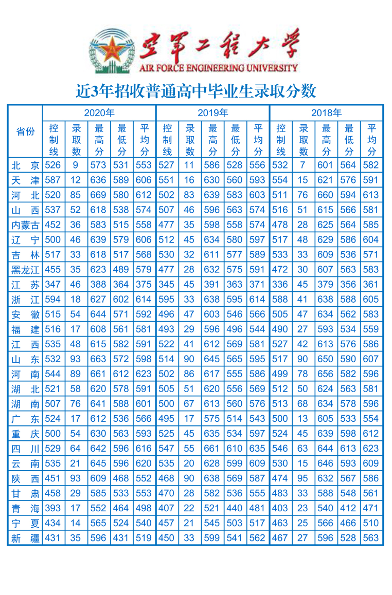 各大军校2021年的录取分数线暂未公布,本文整理了2020年或2018年-2020年,各军校的录取分数线,以供参考。全国虽然共有43所军校,但面向高中生招生的只有27所,以下将分别介绍各军校的最低分数线是多少。