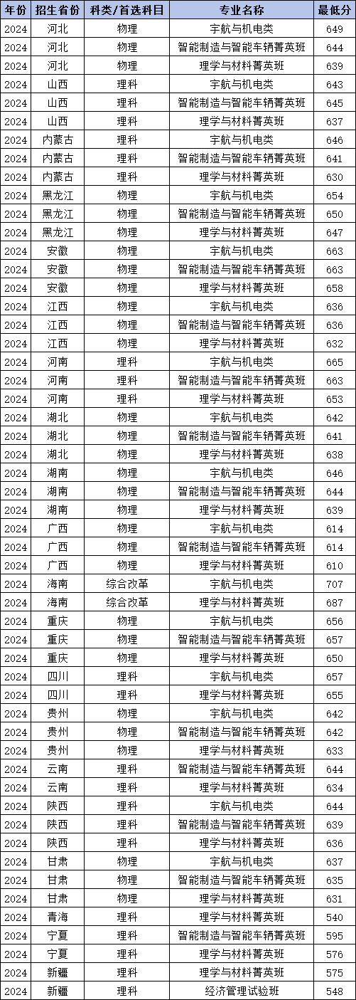 | 理科 | 智能制造与智能车辆菁英班 | 644 |