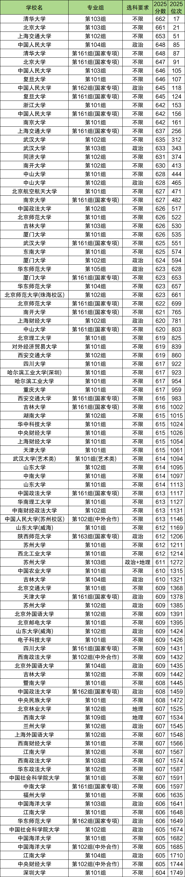 下面是2025年公办本科录取分数线排名前100强名单(物理方向):