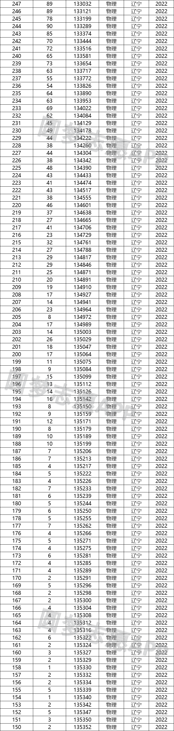 一、2022年辽宁高考物理类一分一段统计表(位次表)