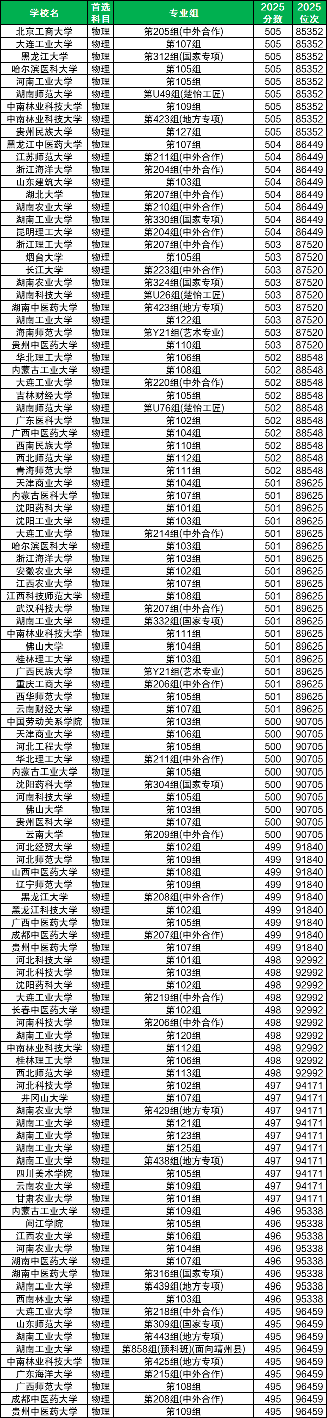 物理类/理科500分左右能够选择的院校数量较多,共有141所,含206个院校专业组,这里仅推荐重点大学。500分左右可以报考的一本大学中,211大学有云南大学(209组500分)、湖南师范大学(U76组502分、U49组505分),不过这三个专业组不是中外合办就是楚怡工匠,这类单列计划不适合大部分人报考。