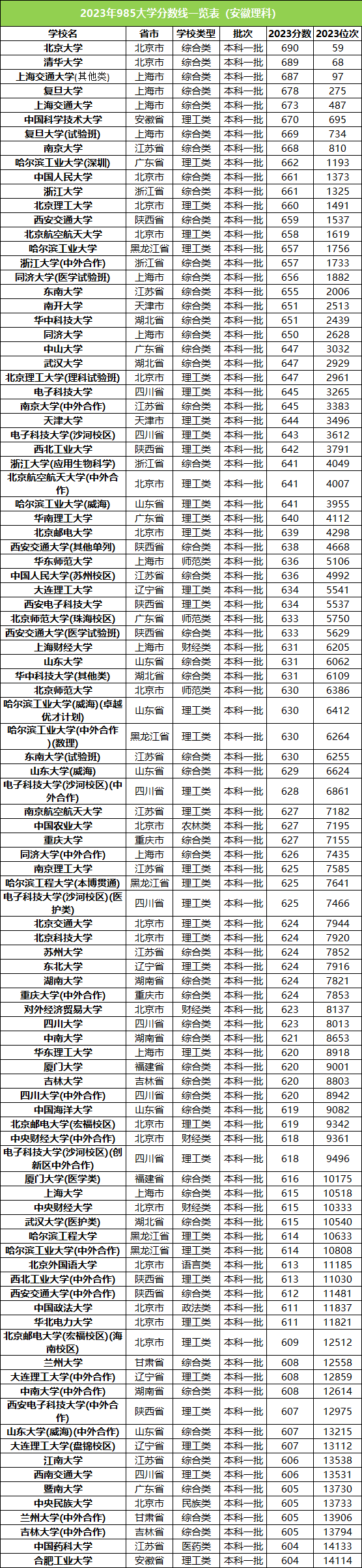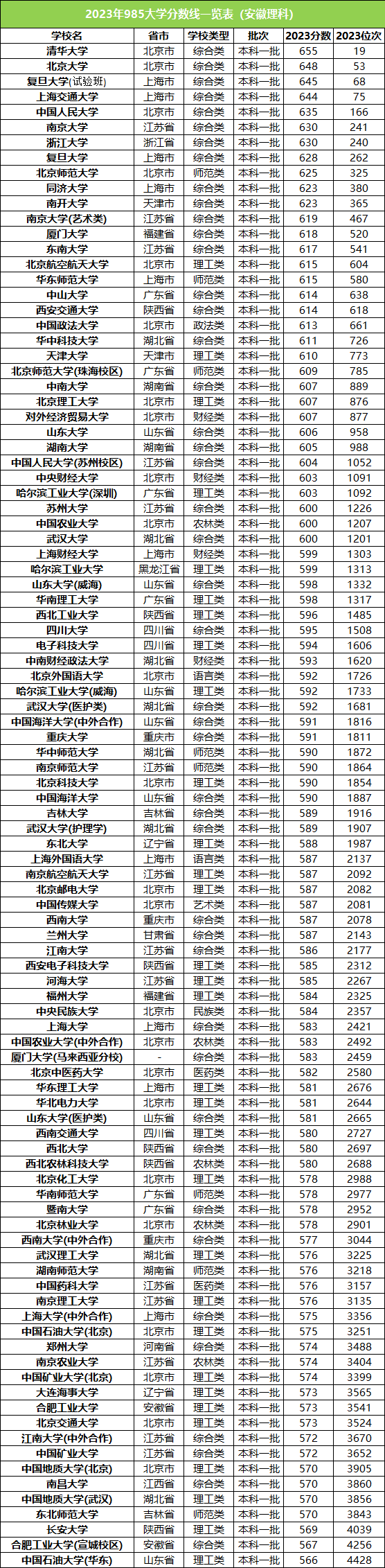 小编在此以安徽省为例,整理了2023年安徽211大学录取分数线排名前100的名单,如下: