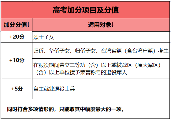 三、招生规定:高考加分篇