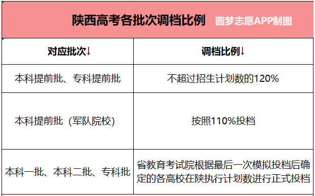 1、陕西2022高考:各批次调档比例