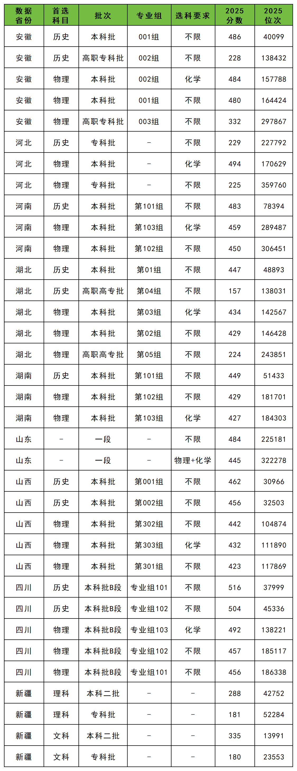 安徽:历史类最低486分;物理类最低480分;