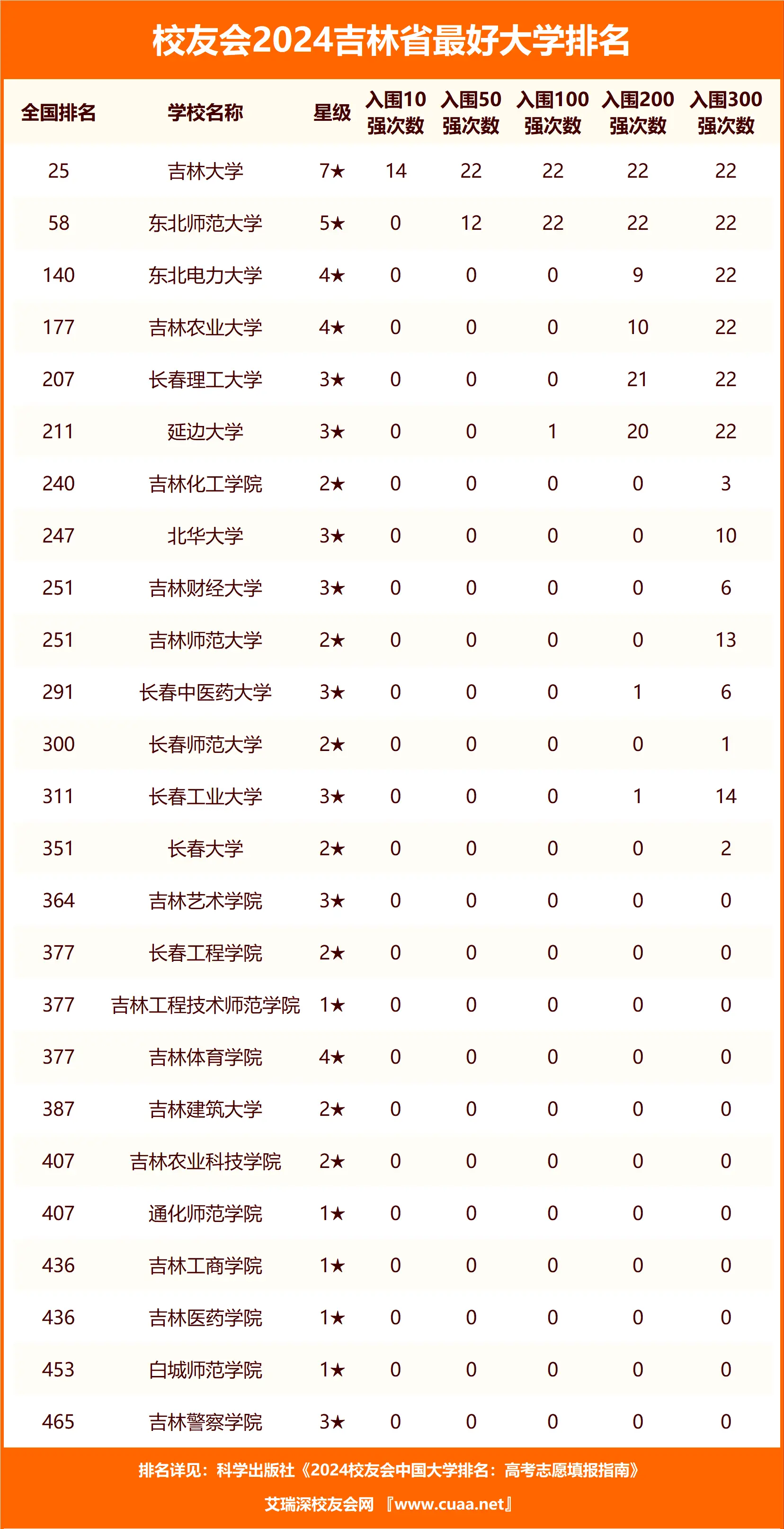 因为各个榜单都是对吉林省所有本科大学进行排名,因此以下为2024年校友会吉林省本科大学排名。