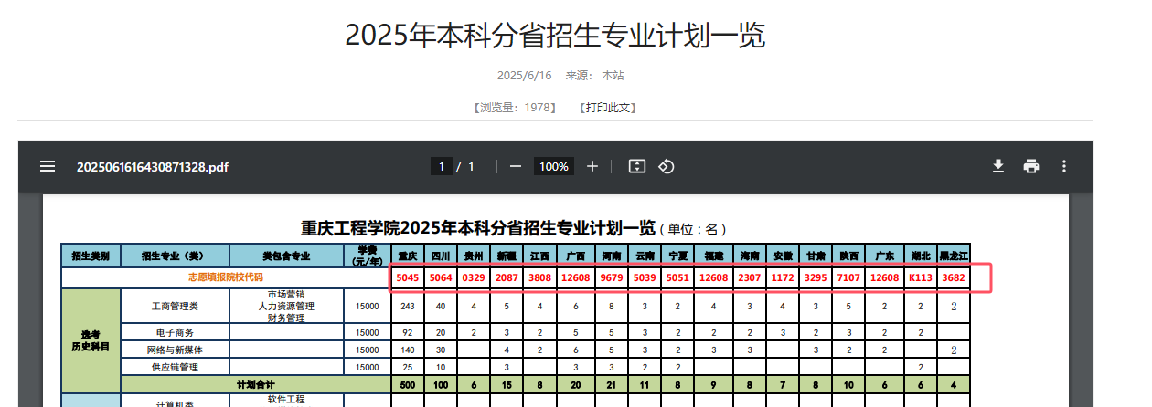 如登录北京市教育考试院官网,可查到【北京市2025年普通高等学校招生专业目录】;登录重庆工程学院招生网,可查到【2025年本科分省招生专业计划一览】等,2026年代码预计在6月份左右公布。