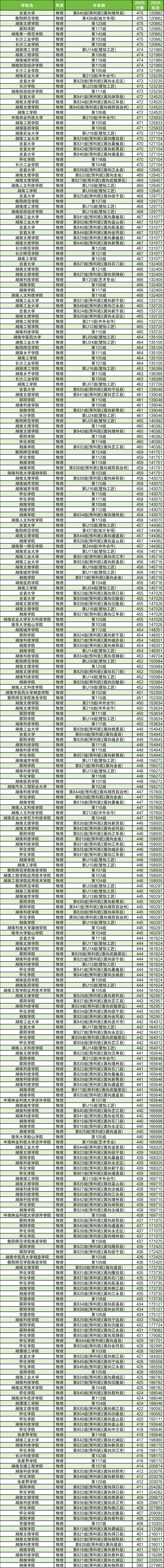 以下为2025年湖南省内物理类所有二本大学分数线(可滑动查看):